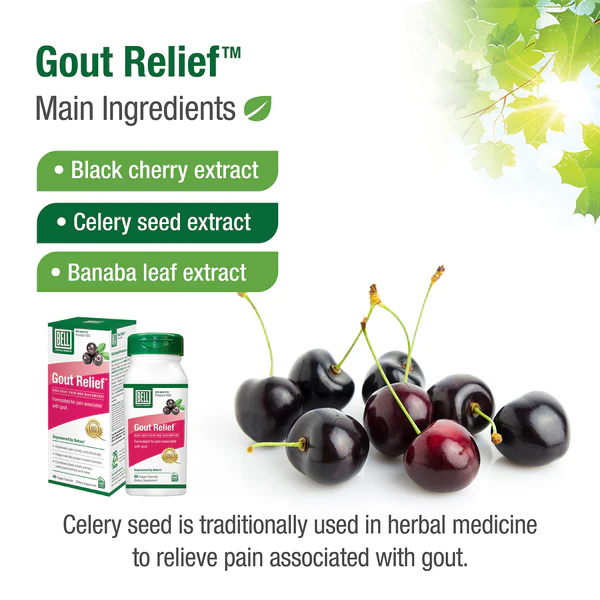 Gout is a condition that impacts the joints and can be debilitating. When a gout flare strikes, you need fast, effective support.  Bell Gout Relief features a well-established natural ingredient celery seed extract along with black cherry extract and more.  Achieve some relief today.